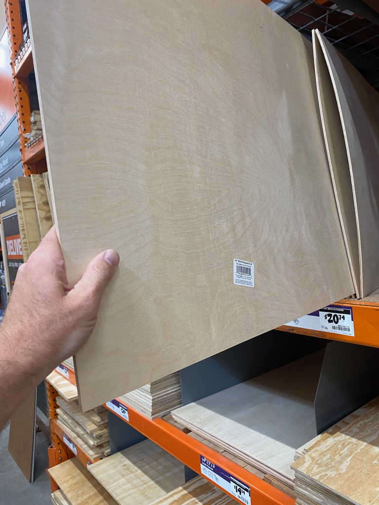 The door faces measure at 15×32 inches. After looking on Pinterest for ideas with this specific piece of furniture, we found one with the look we were looking for with simple panels. The main differences were the size and colors of the panels since we wanted a wood stain finish. We went through many iterations on the size and number of panels for the face of the cabinets. We decided on only two panels for the faces of the doors. The two panels measured at 11×26 and 7×20 inches. We decided to use birch plywood since it takes stain nicely. We needed 3 2×4 ft panels from Home Depot.