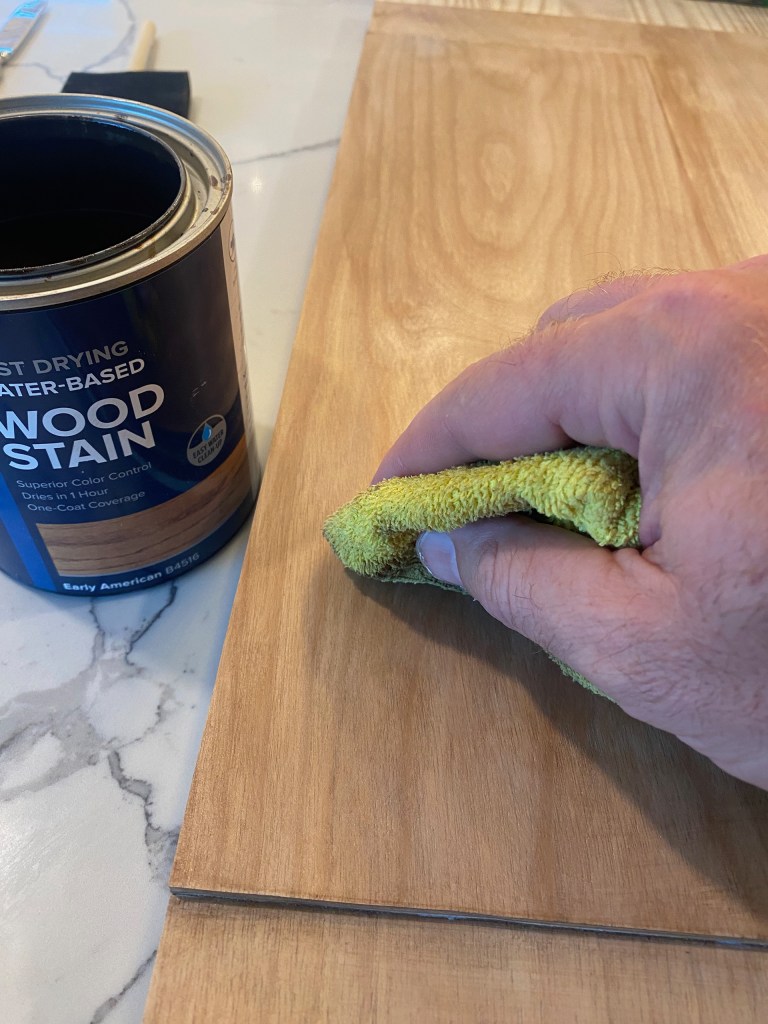 Repeat these steps when staining the cabinet box and the pine board for the table top.