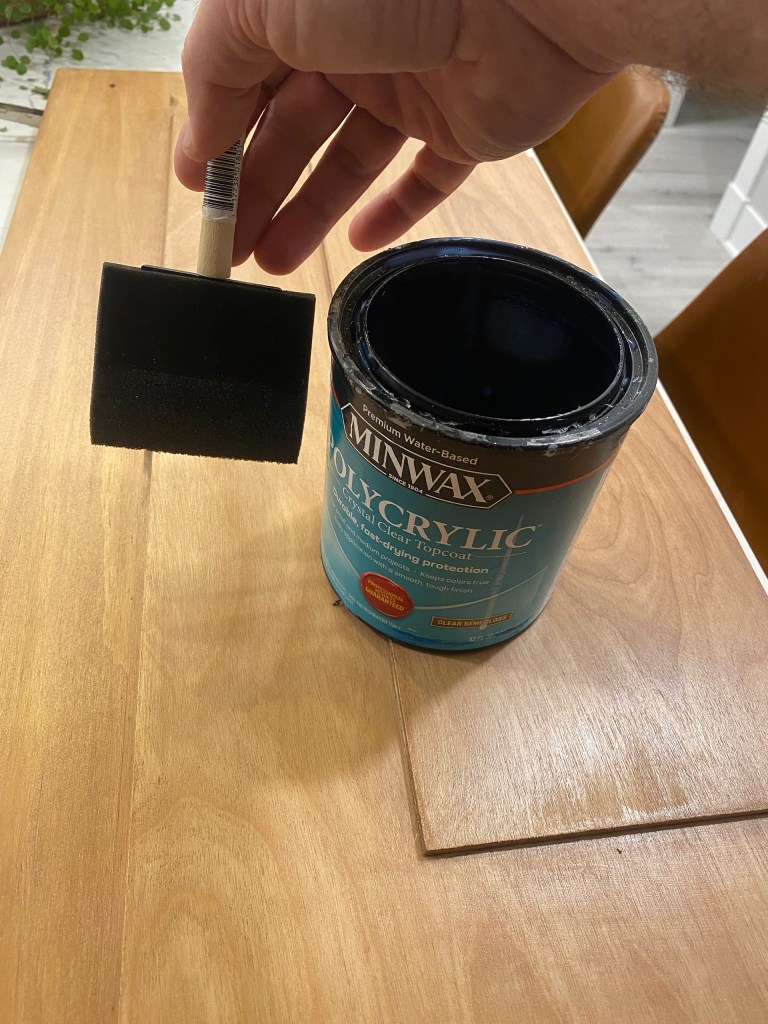 Use a Polycrylic to add a nice protective finish. I like using Polycrylic instead of Polyurethane since Polyurethane leaves a yellowish tint to the finish.