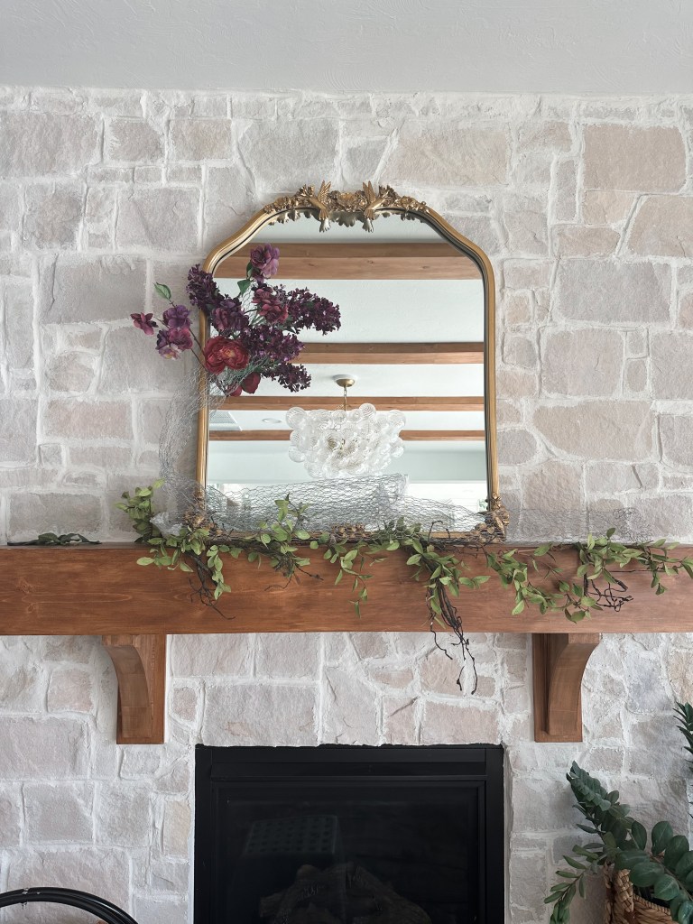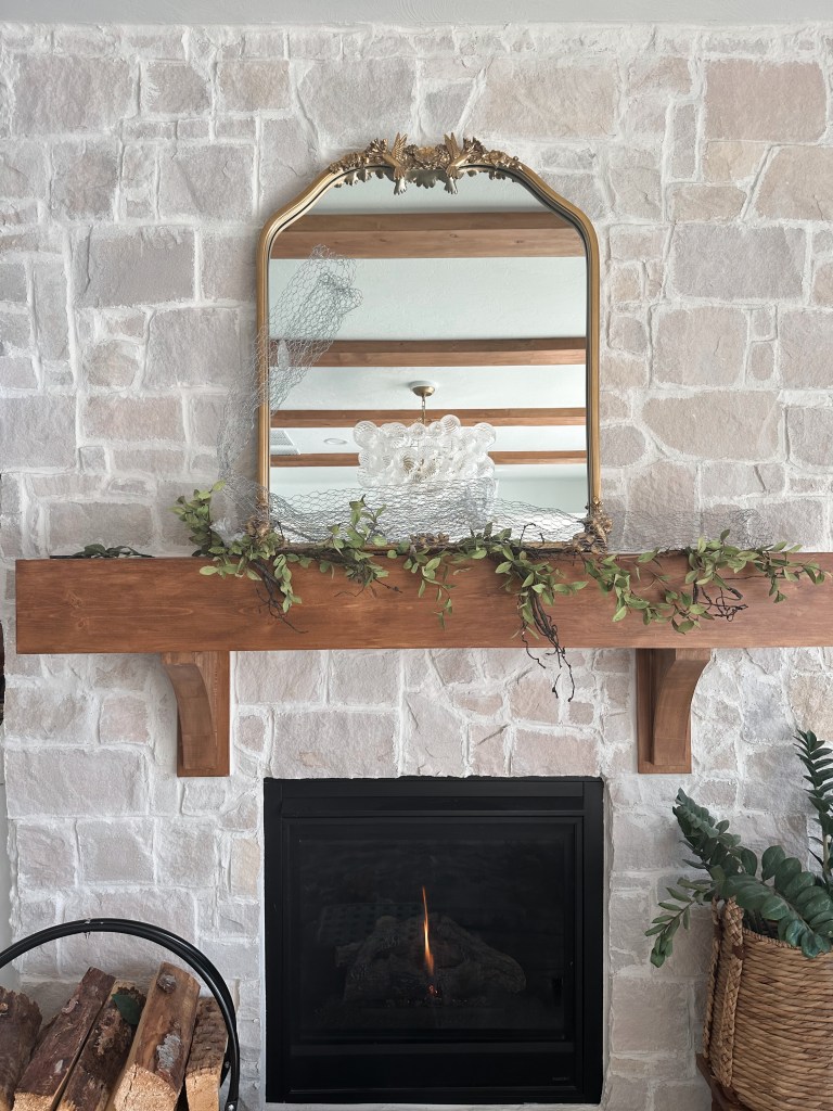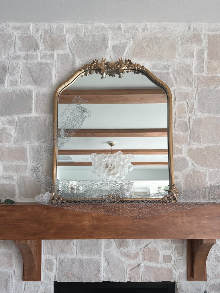 - Alright, here, you can see our bare blank mantel (minus the lovely Anthro mirror which I had my eyes and heart set on for quite some time before snagging it during a Black Friday deal). I first got my floral mesh wire (smaller chicken wire) and formed it into a tube shape and played around with where I wanted it on the mantel.