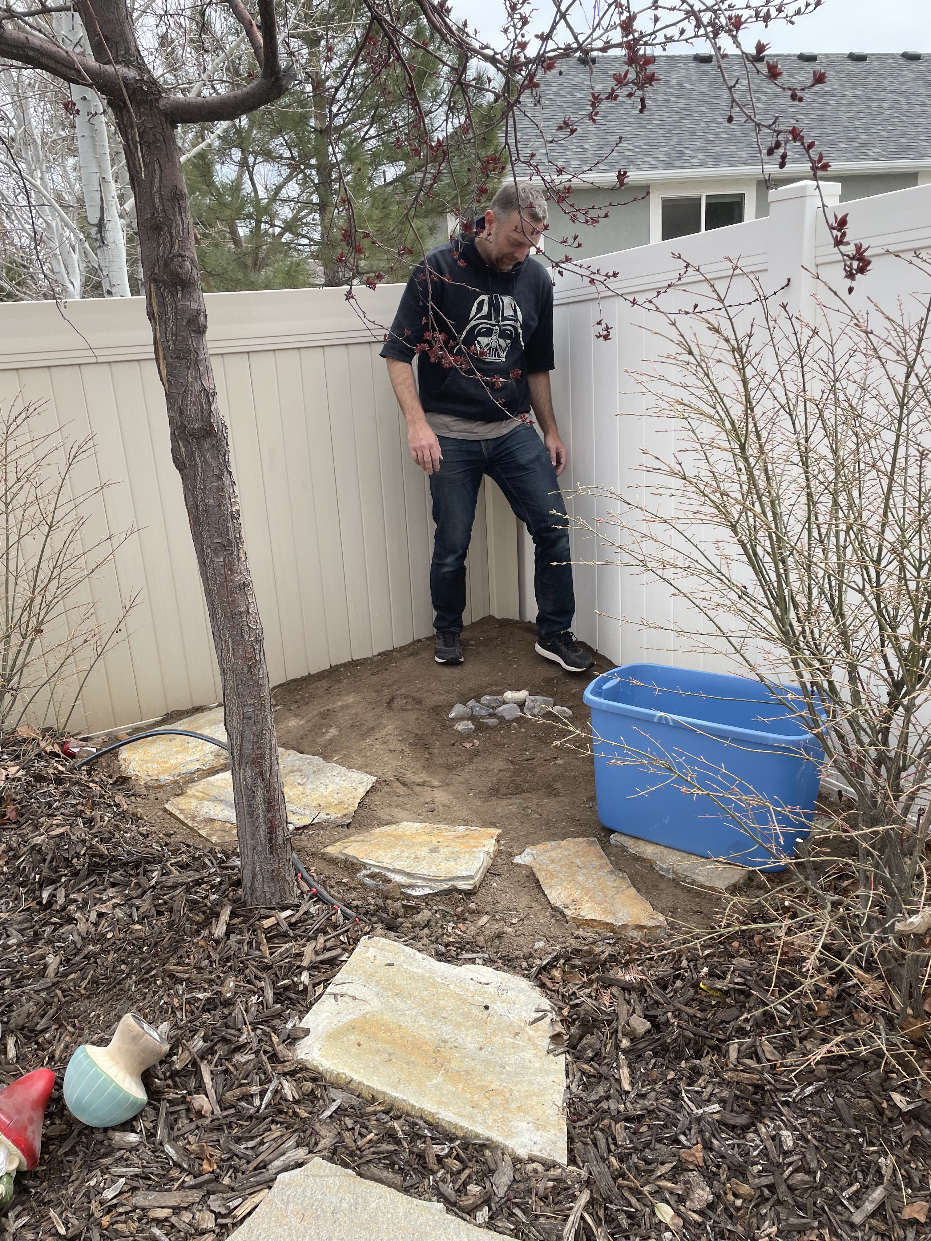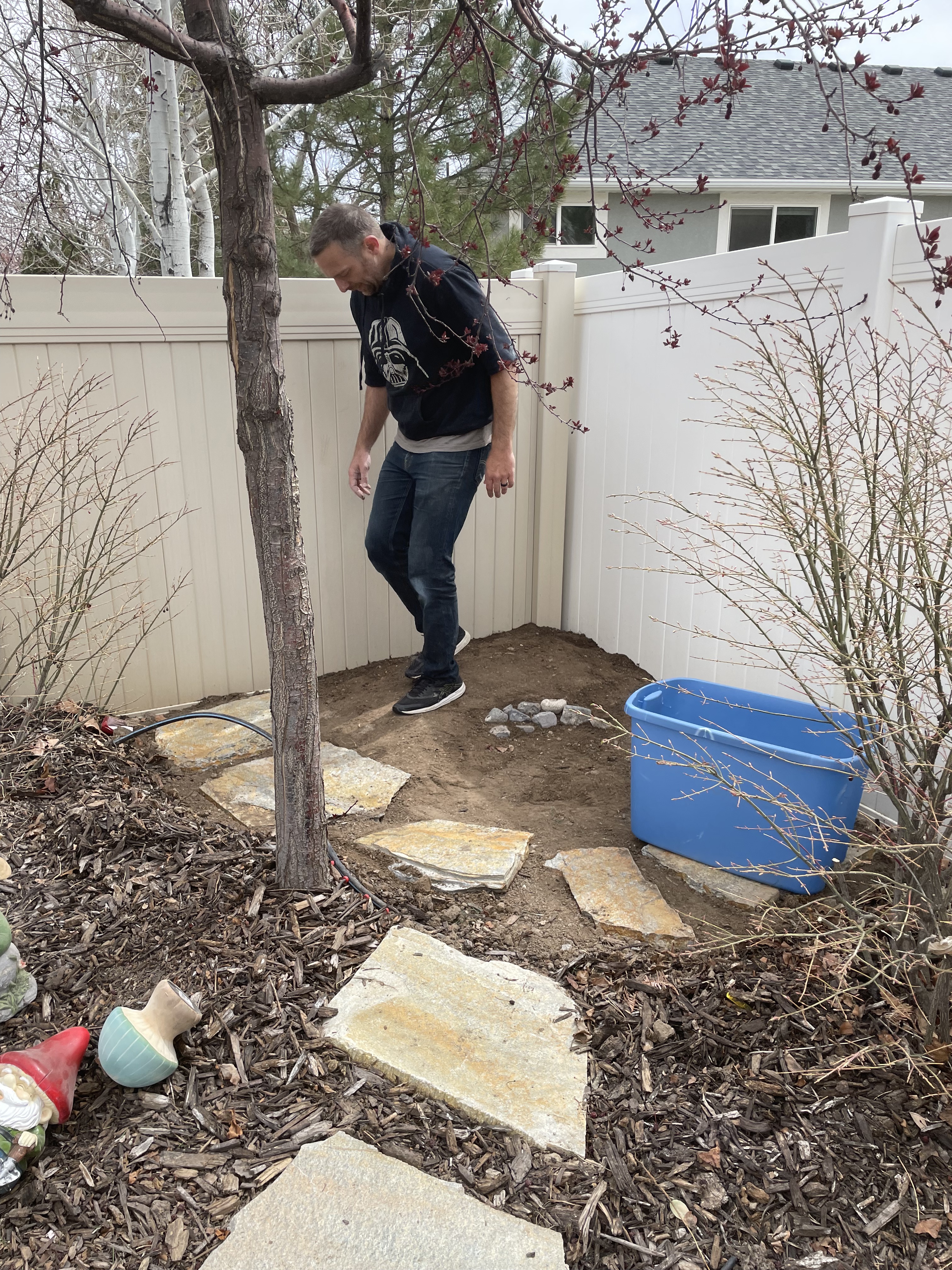 With your supplies in hand, it’s time to roll up your sleeves and start building your fairy garden masterpiece. Begin by selecting a suitable location in your backyard – a shady corner or under a tree works best to create a magical ambiance. Clear the area of any debris. Fill in the area with dirt if its a lower area. You don’t want to have any issues with puddles so build up the ground by adding in dirt and lay down a base of fake grass or moss to serve as the foundation for your garden.