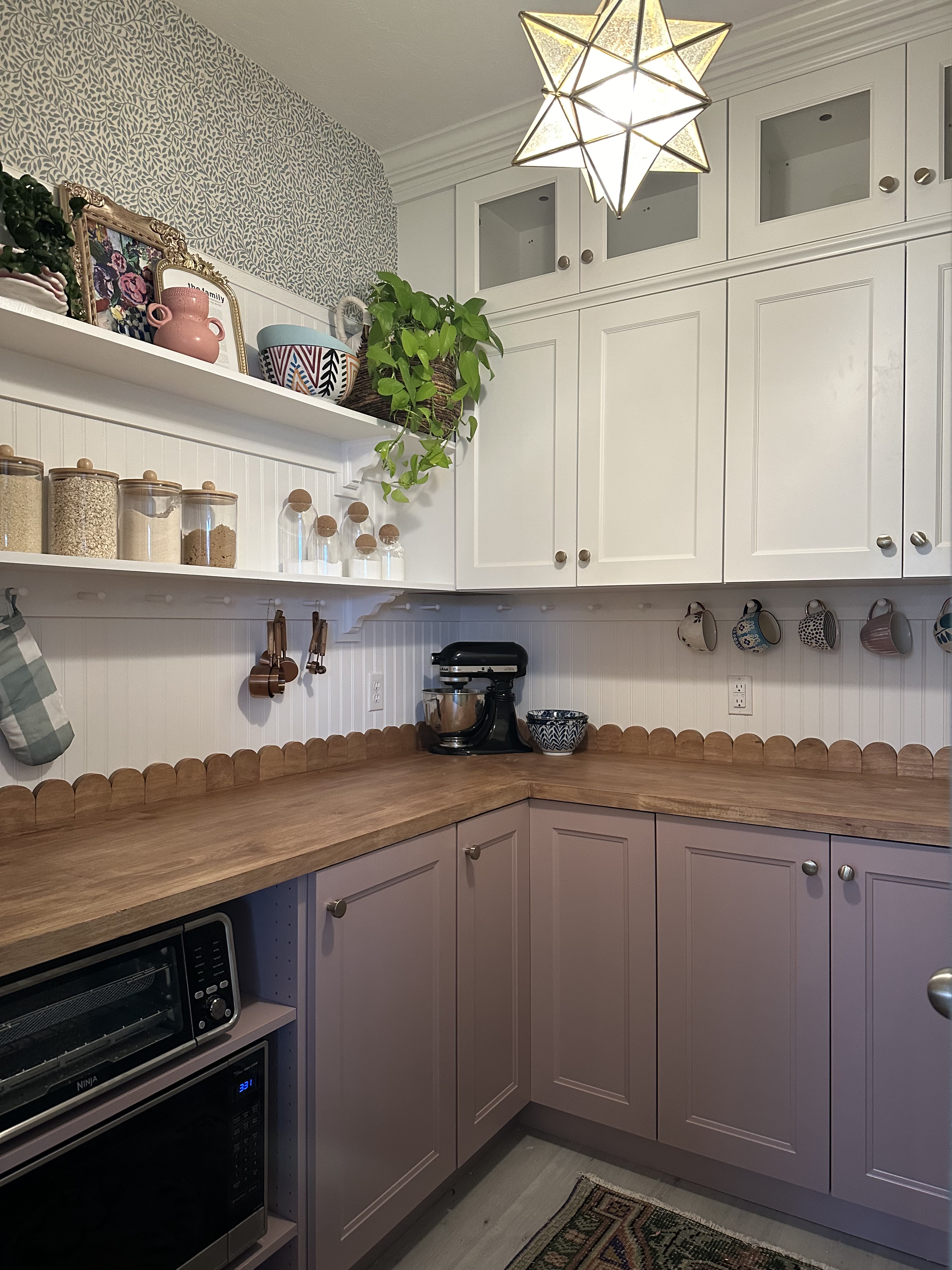 For the pantry, we opted for simpler corbels with curvy lines, reflecting a more utilitarian aesthetic while still adding charm. These corbels provided additional support to the shelves, ensuring they could bear the weight of our pantry items while also serving as decorative elements.