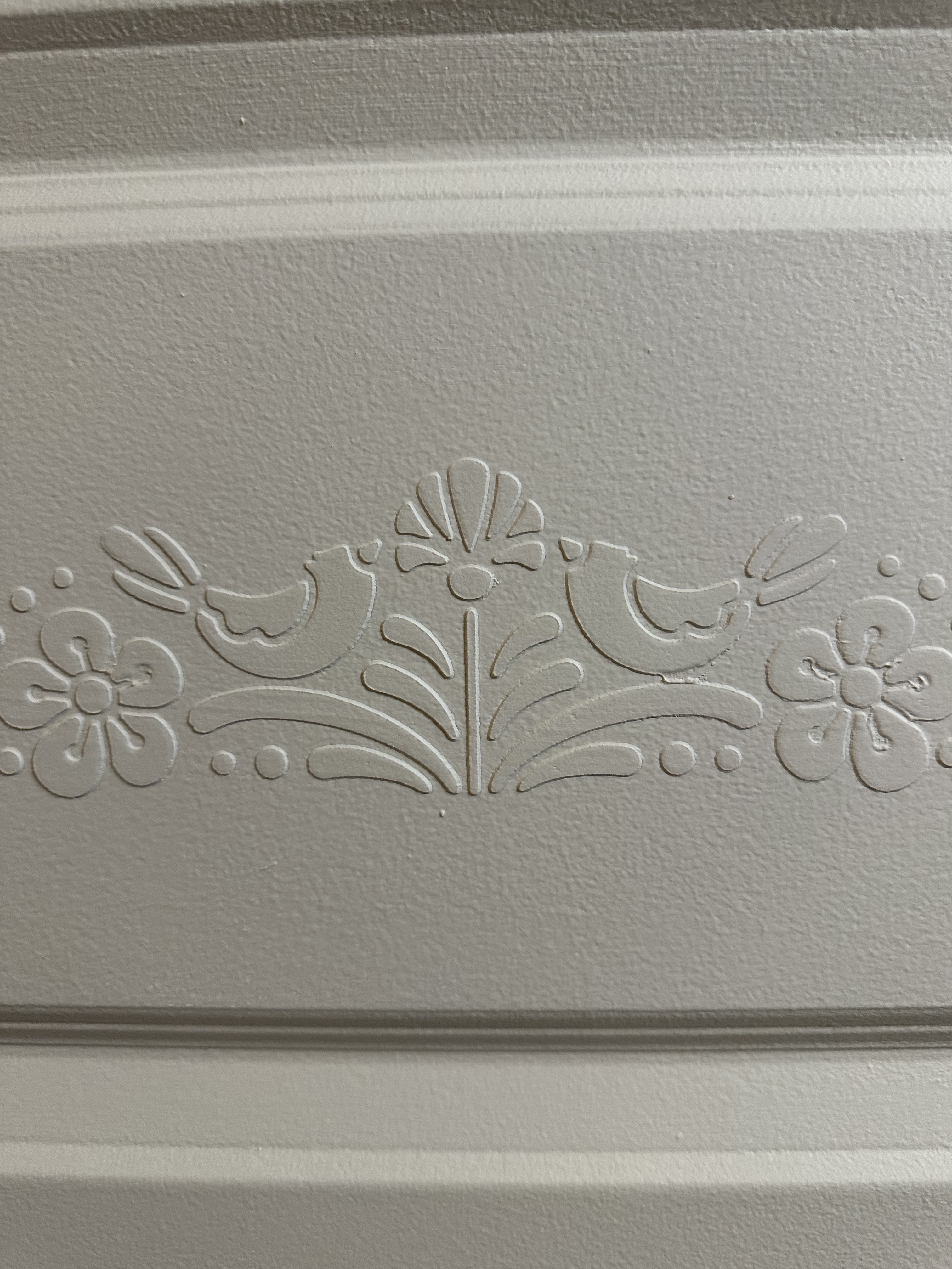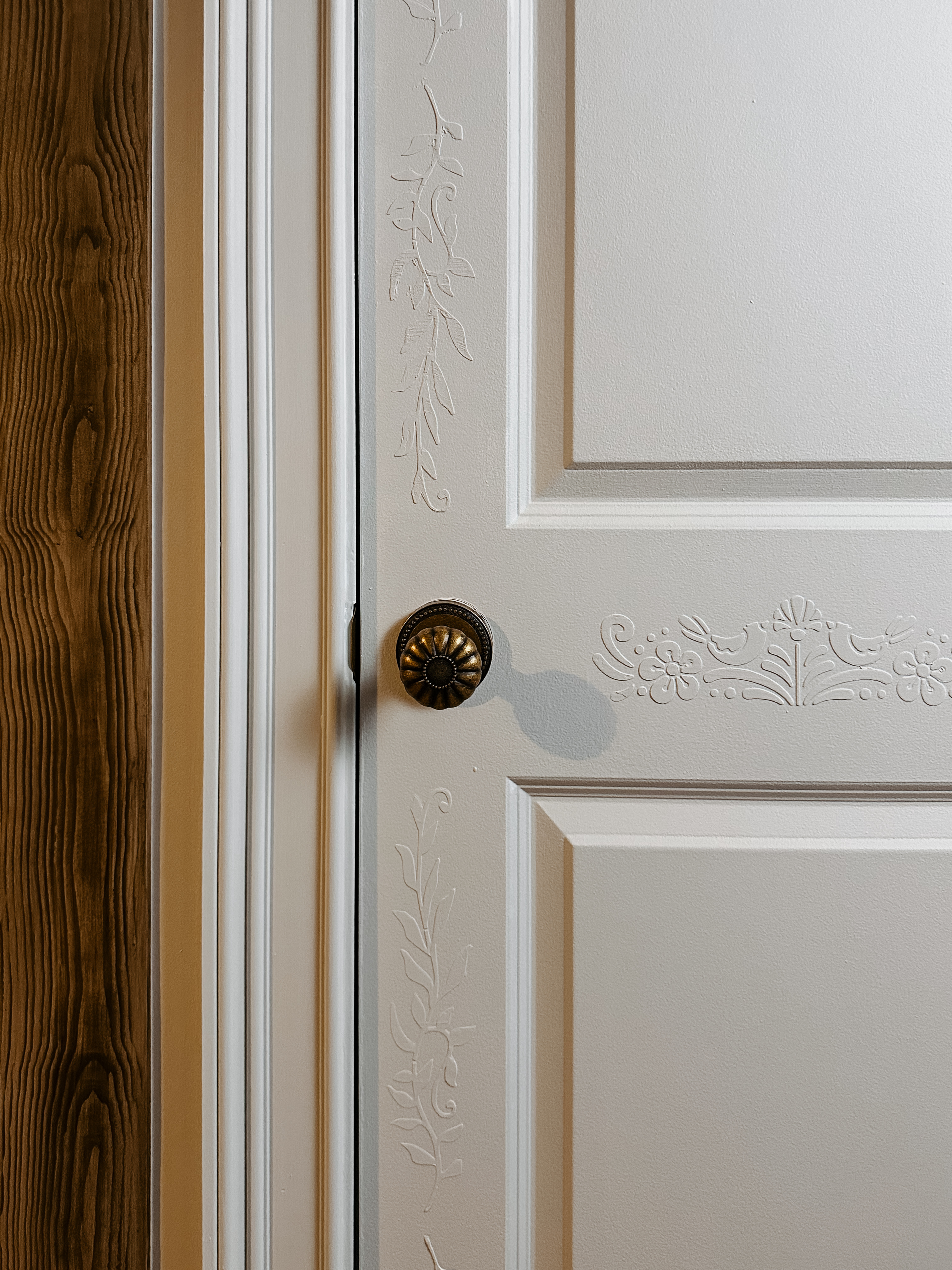 Gently peel off the stencil while the plaster is still slightly wet. And voila! What was once a snoozefest closet door is now an eye-catching piece of art!
