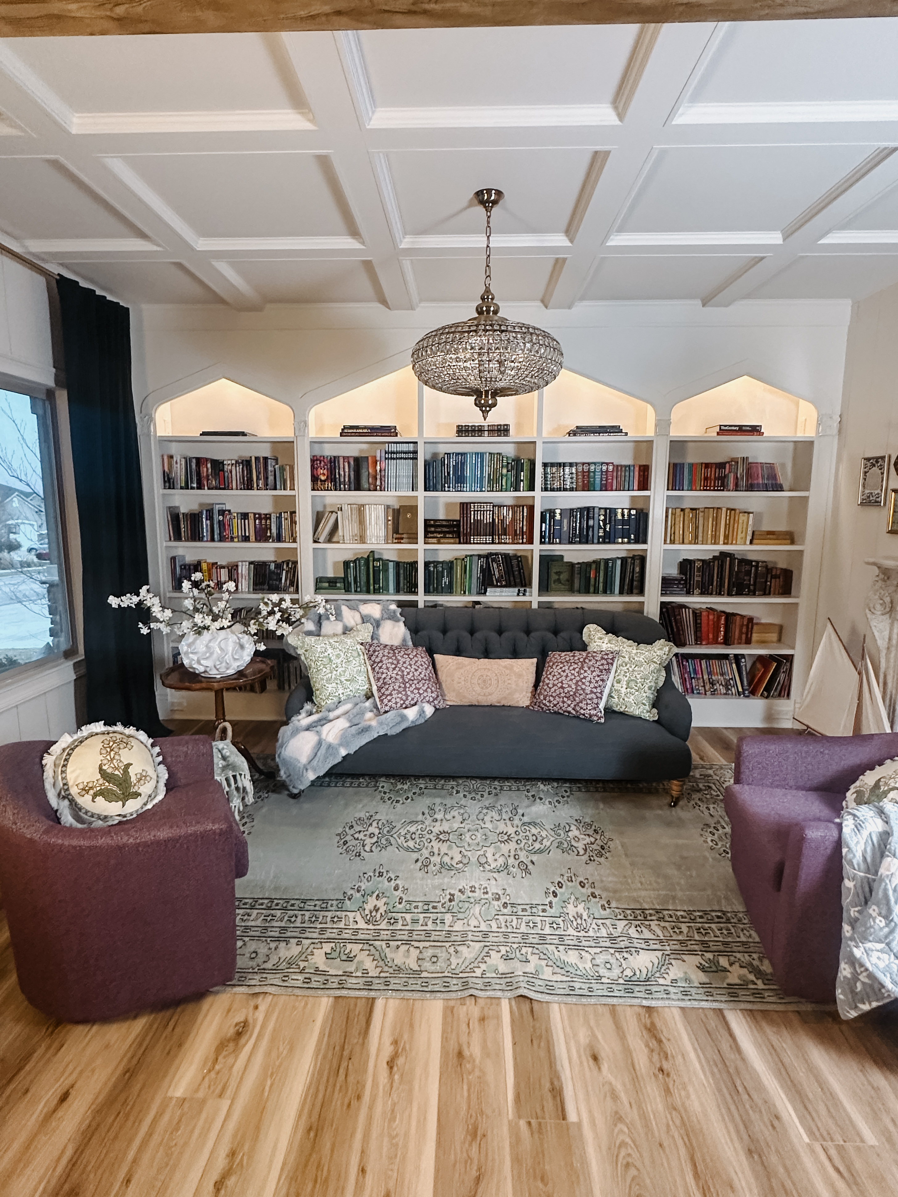 Every home has its design challenges, and for us, the threshold leading into our library was one of them. This seemingly small detail played a significant role in connecting multiple spaces within our house. It’s a spot where the character of the elegant library we completed this year meets the warmth of the wooden staircase…
